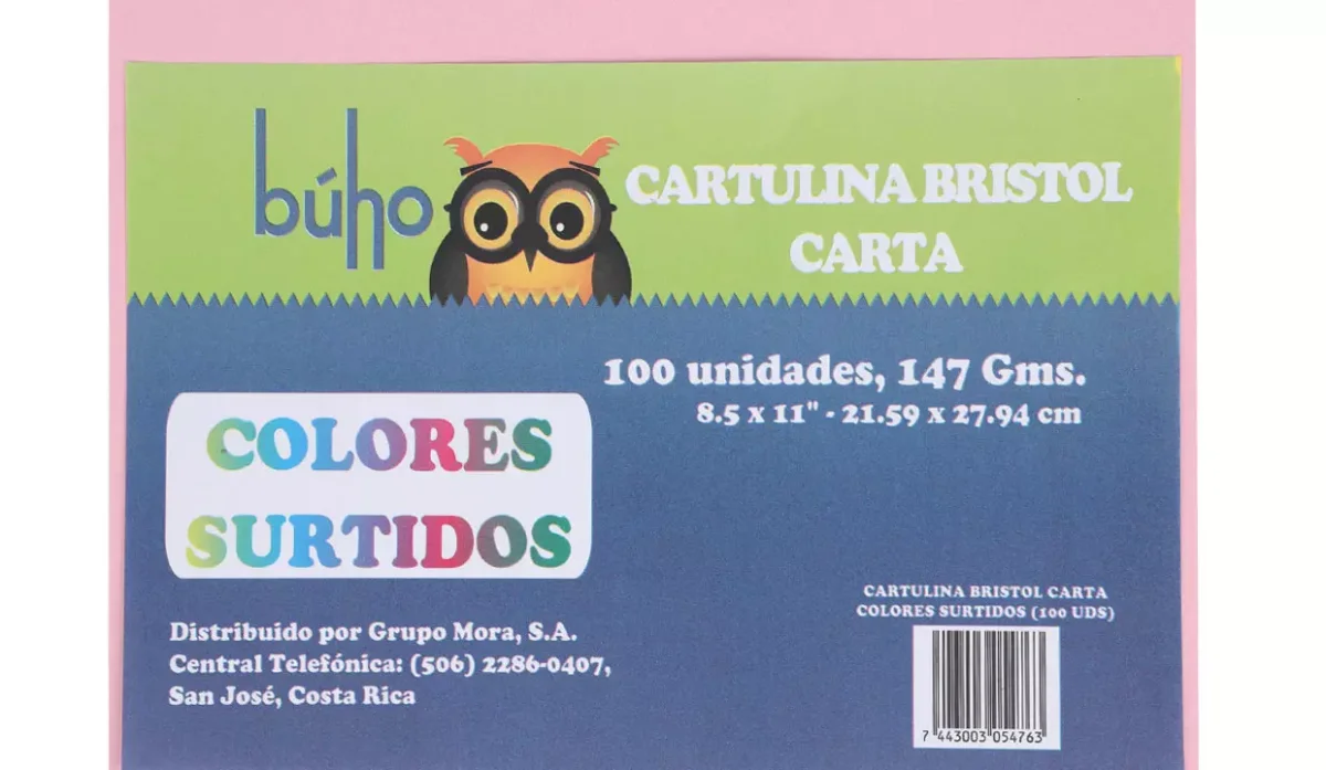 CARTULINA BRISTOL DE COLORES BÚHO 100 UNIDADES