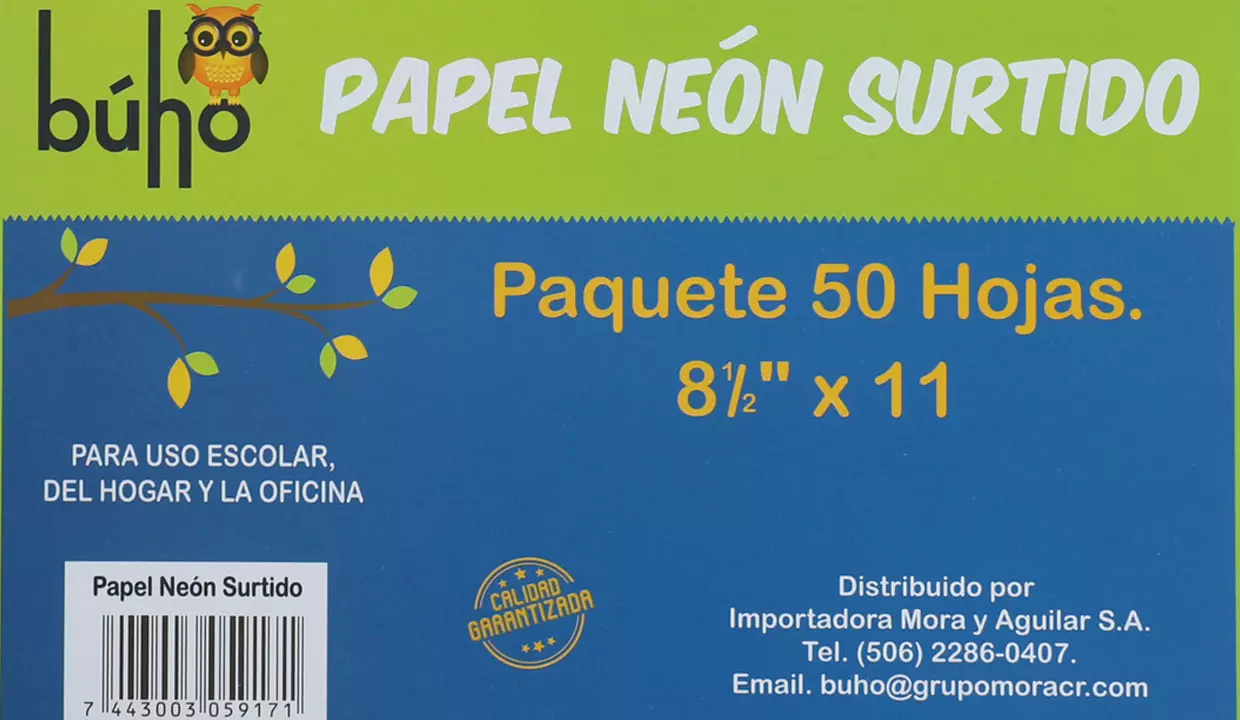 PAPEL NEÓN SURTIDO BÚHO 50 HOJAS