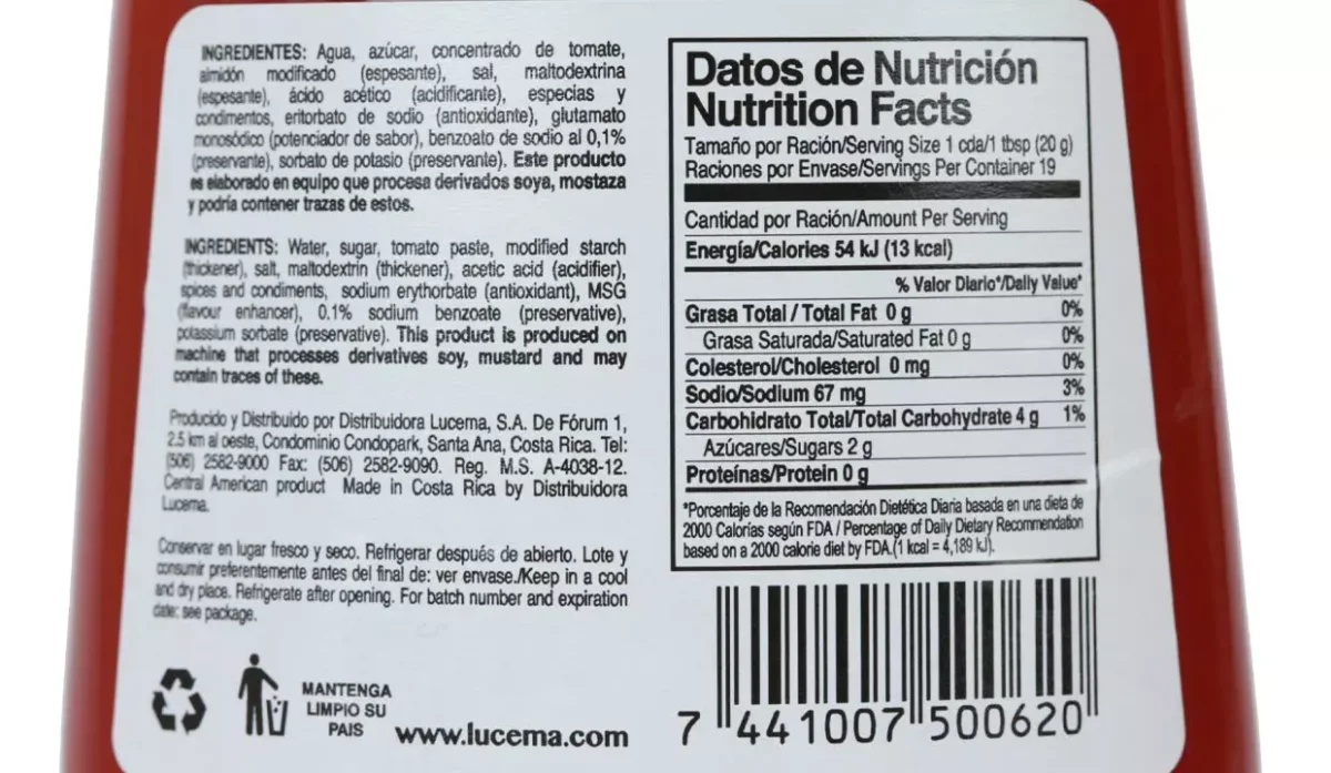 | Ingredientes | Agua, azúcar, concentrado de tomate, especias y condimentos |