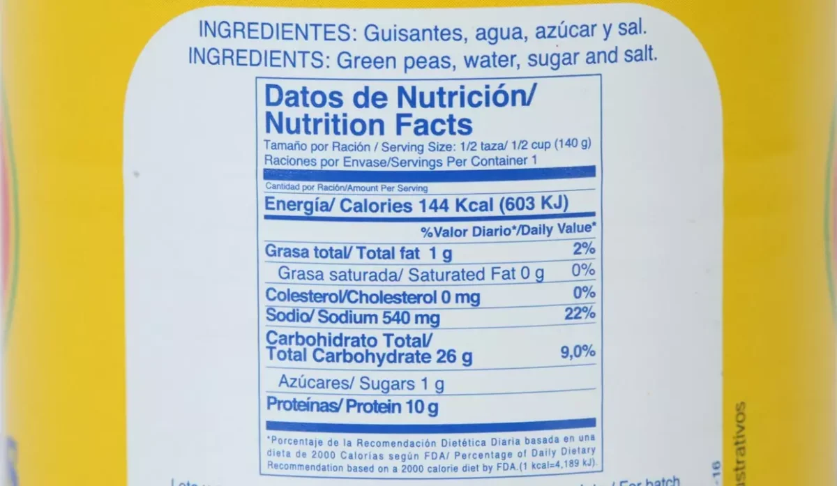 | Ingredientes | Guisantes, agua, azúcar y sal |