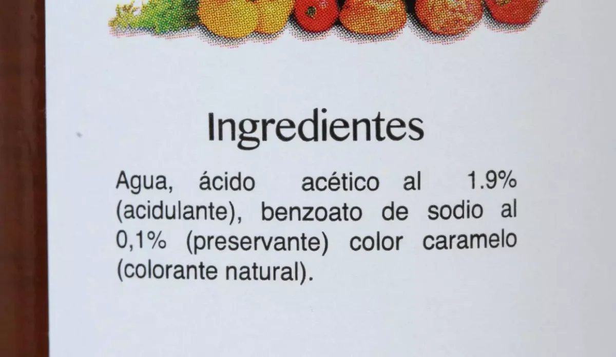 | Ingredientes | Agua, ácido acético al 1.9% y color caramelo |