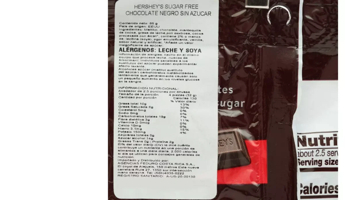 | Ingredientes | Mantequilla de cocoa, chocolate, leche, grasa de leche, soya, saborizantes naturales y artificiales |