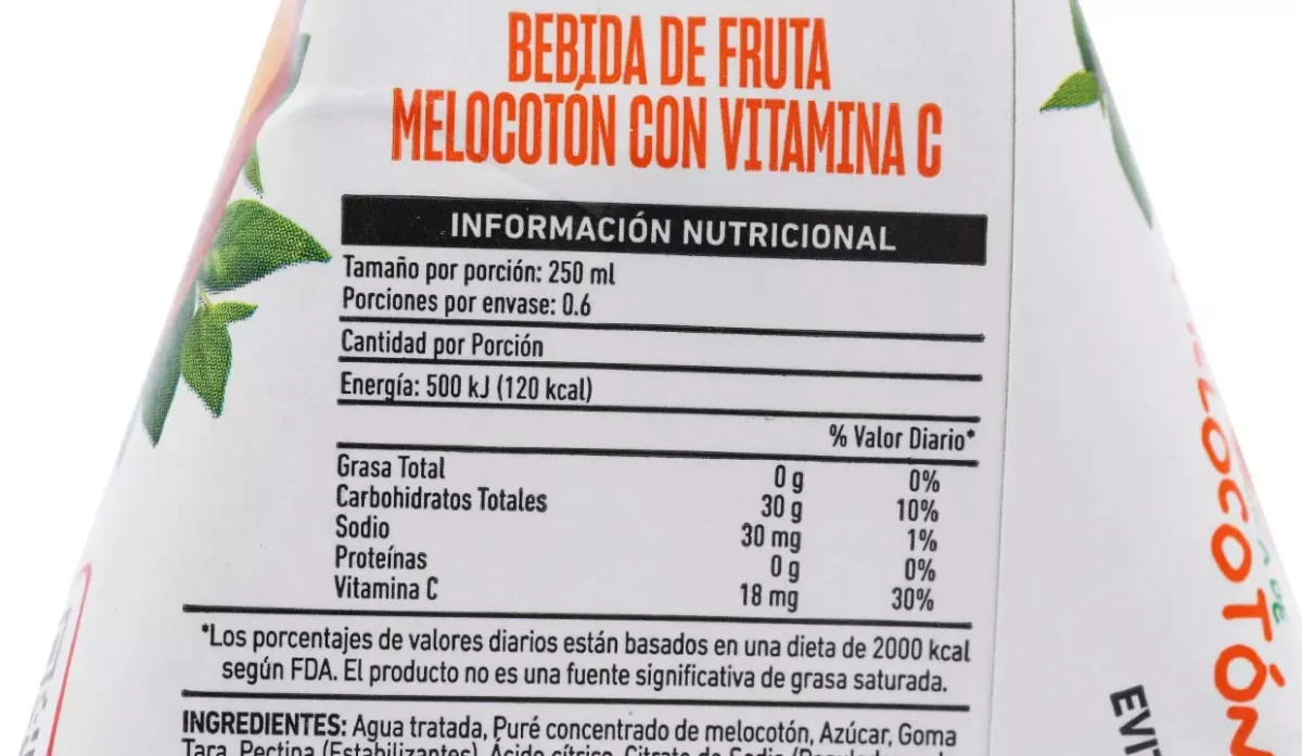 | Ingredientes | Agua tratada, puré concentrado de melocotón, azúcar, goma tara y ácido cítrico |