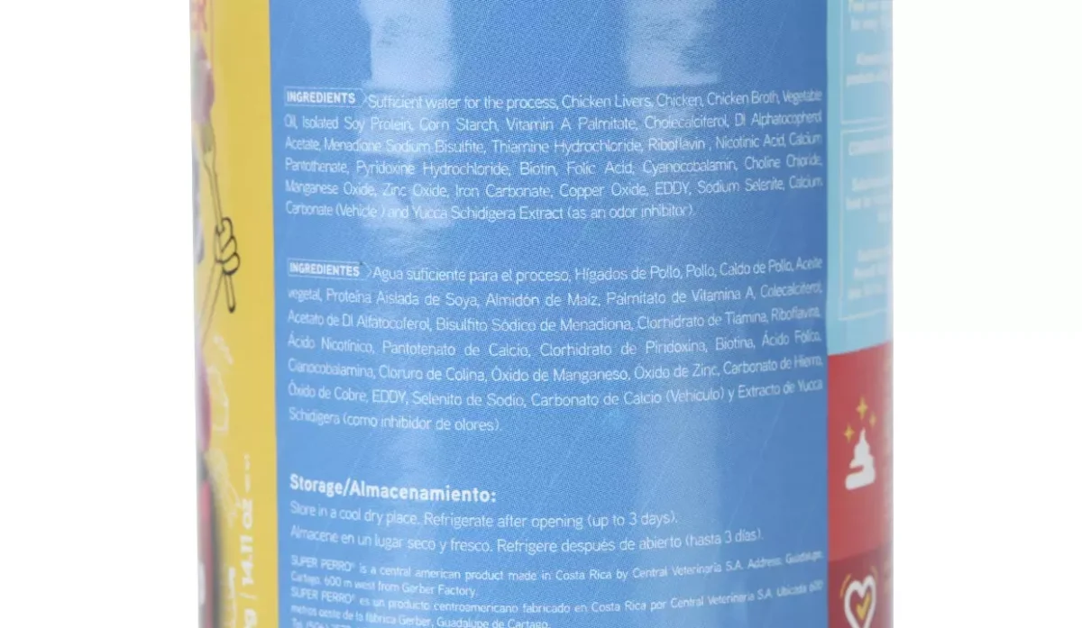 | Ingredientes | Agua, hígado de pollo, caldo de pollo, aceite vegetal, proteína aislada de soya, almidón de maíz |