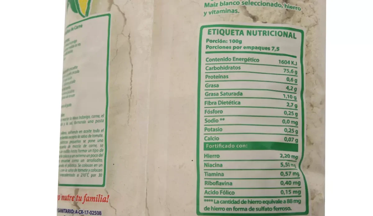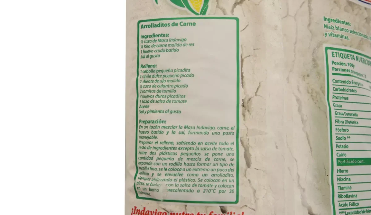 | Ingredientes | Maíz blanco, hierro y vitaminas |