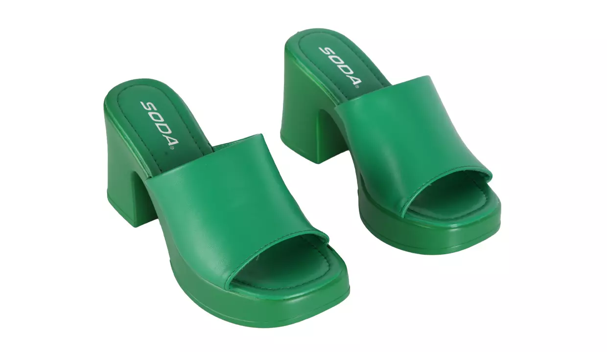 SANDALIAS DE TACÓN GRUESO CON PLATAFORMA SODA VERDE T.8