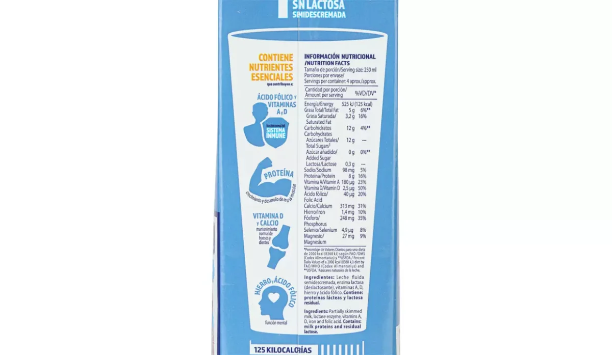| Ingredientes | Leche fluida descremada y vitaminas |