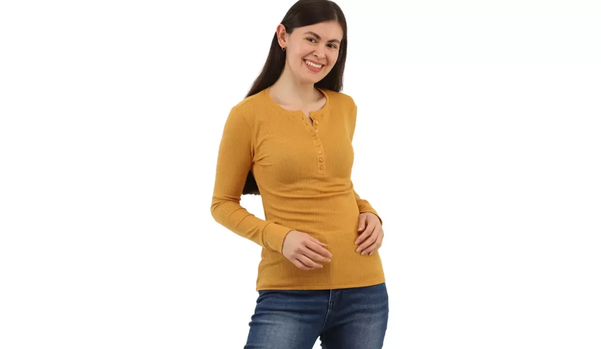 BLUSA MANGA LARGA ACTIVE BASIC MOSTAZA PARA MUJER T.S