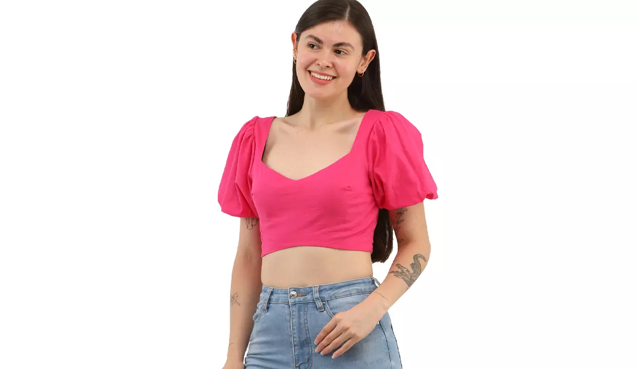 BLUSA CROP TOP THE VINTAGE SHOP FUCSIA PARA MUJER T.L