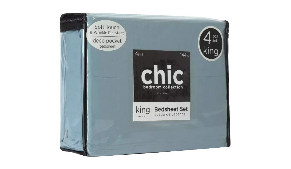 SET DE SÁBANAS Y FUNDAS CHIC GRIS AZULADO KING