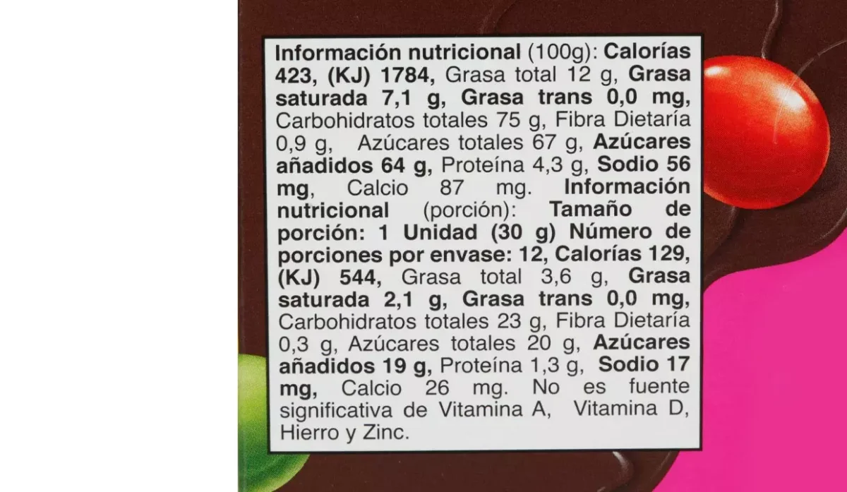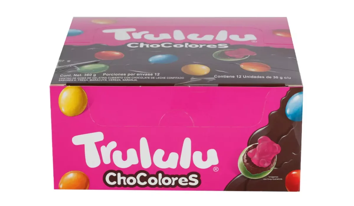| Características | Chocolates con centro de goma de gelatina con chocolate de leche confitado |