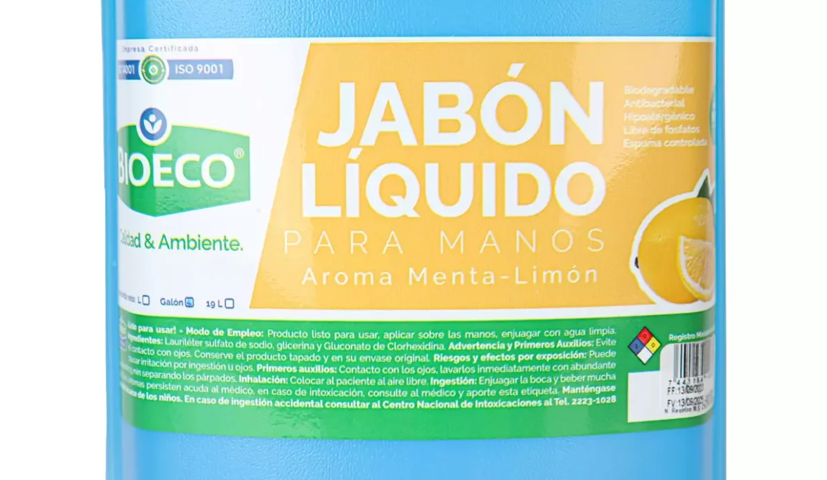 JABÓN LÍQUIDO ANTIBACTERIAL BIOECO MENTA LIMÓN 1 GALÓN