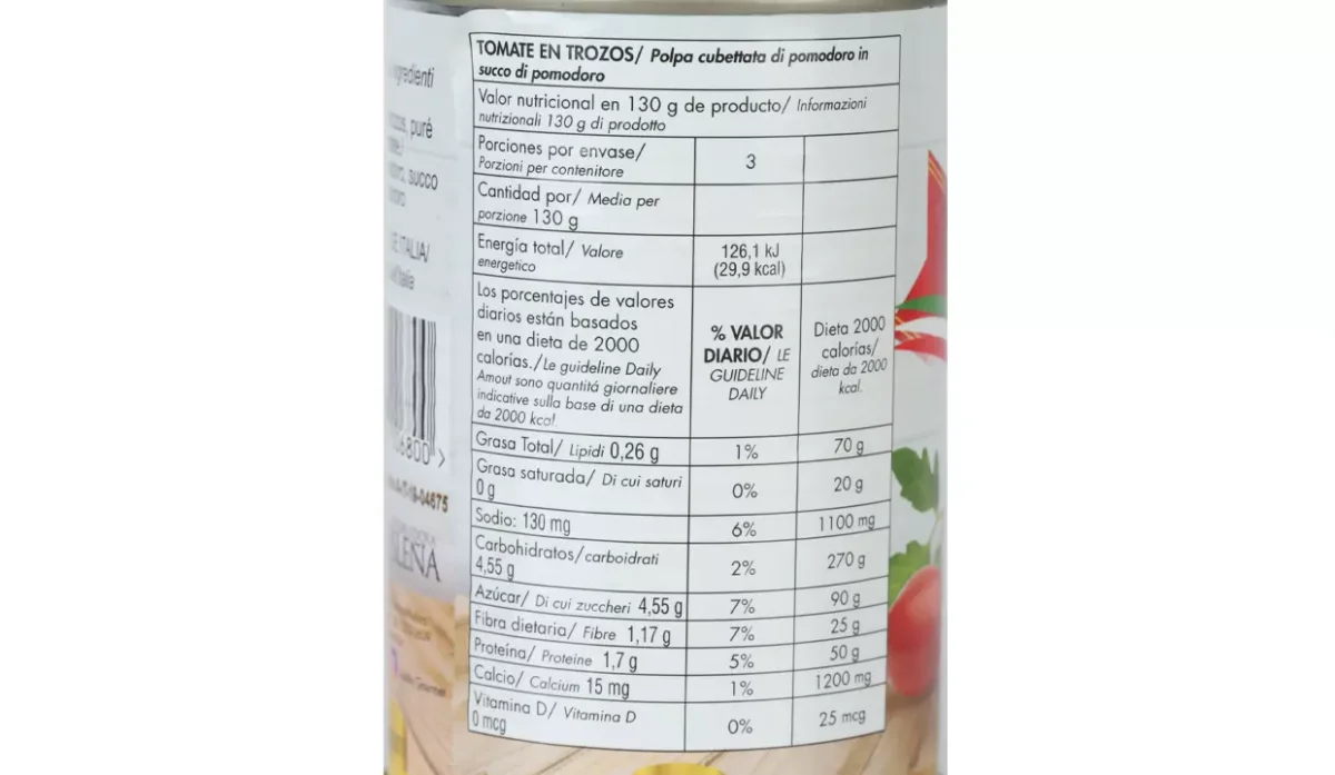 | Ingredientes | Tomates en trozos y pure de tomate |