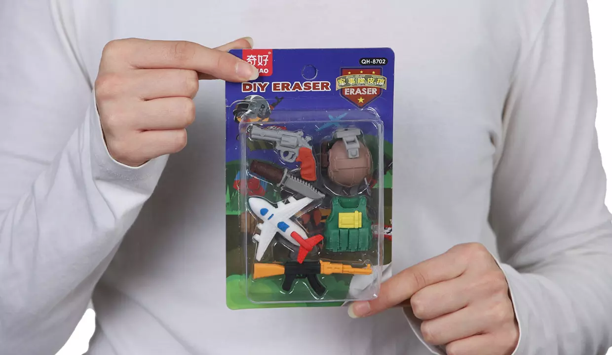 SET DE 6 BORRADORES ARMAS Y AVIÓN QIHAO