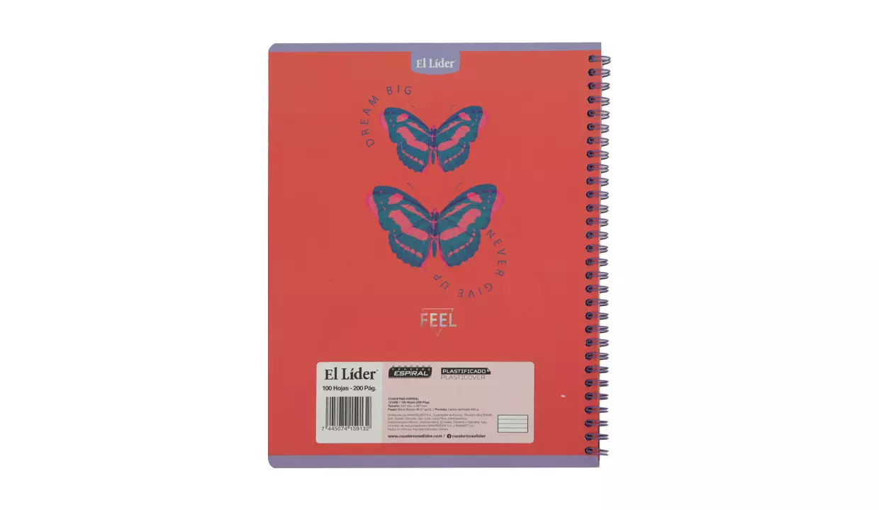 CUADERNO EL LÍDER RESORTE 100 HOJAS TAPA FLEXIBLE