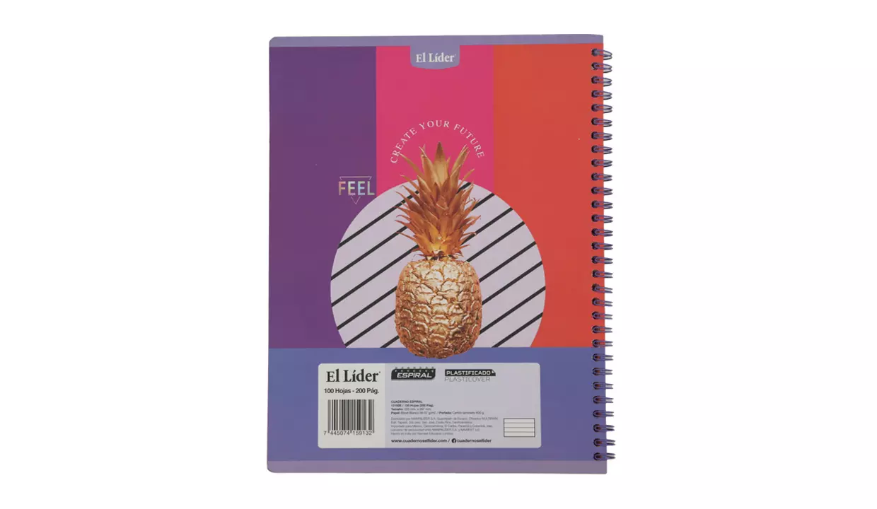 CUADERNO EL LÍDER RESORTE 100 HOJAS TAPA FLEXIBLE