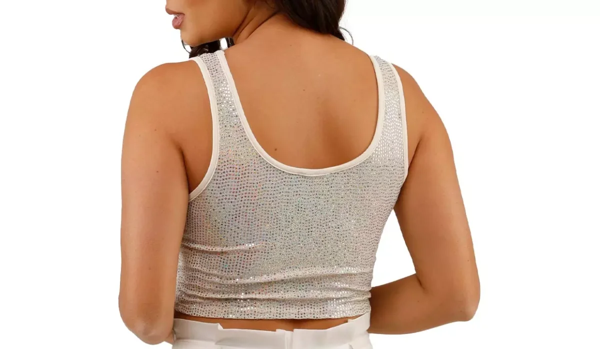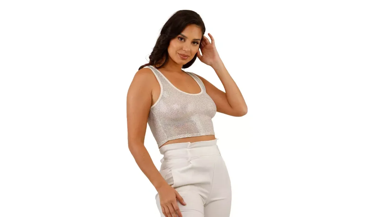 BLUSA CROP TOP BRILLANTE MINI USA BEIGE PARA MUJER T.S