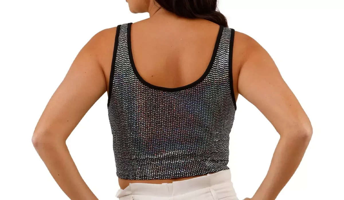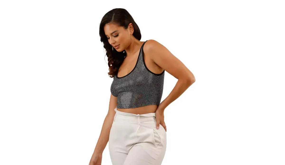 BLUSA CROP TOP BRILLANTE MINI USA NEGRO PARA MUJER T.S