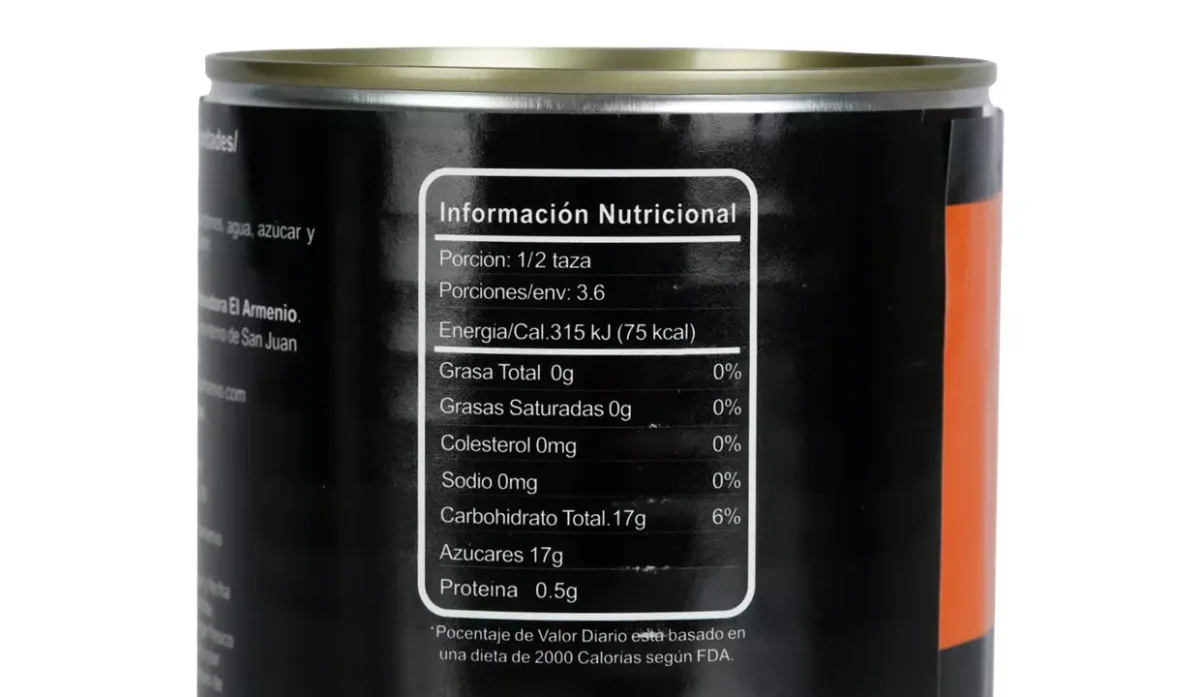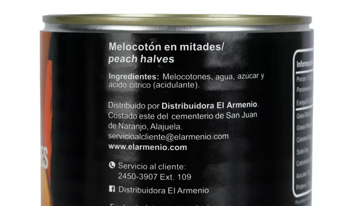 | Ingredientes | Melocotones, agua, azúcar y ácido cítrico |