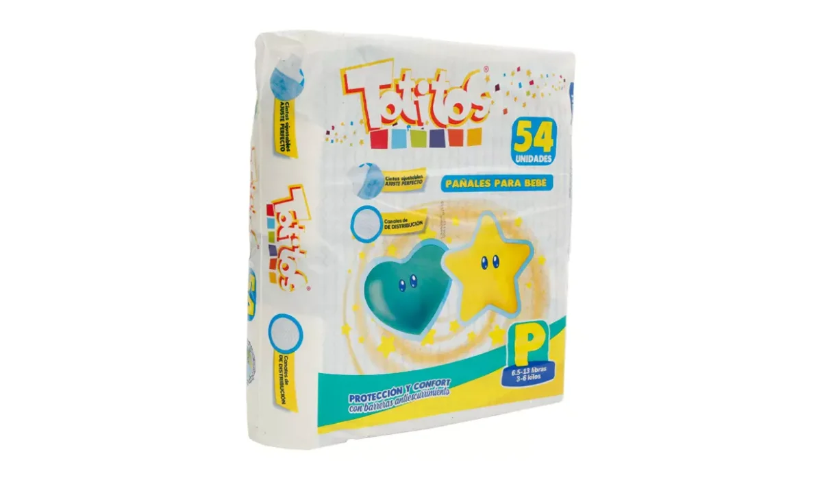 PAÑAL PARA BEBÉ TOTITOS 54 UNIDADES T.P 3-6 KILOS
