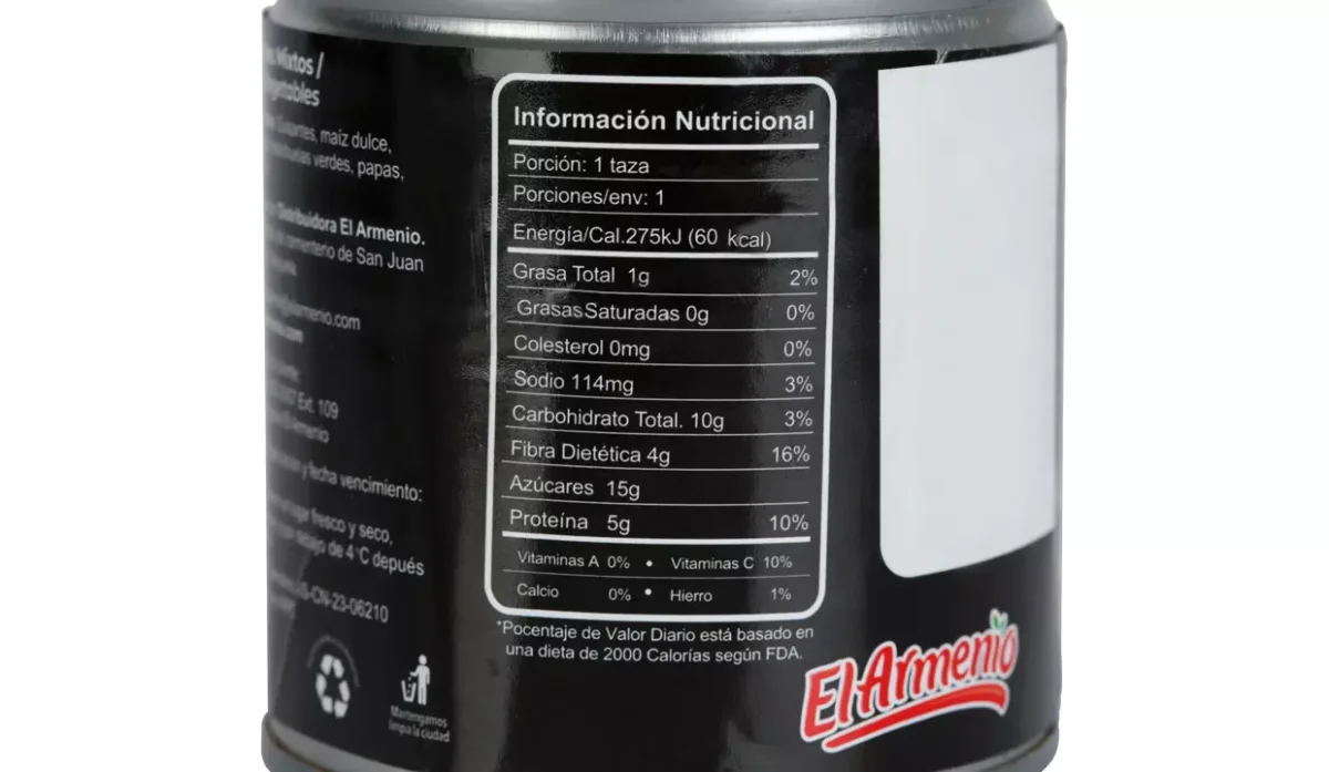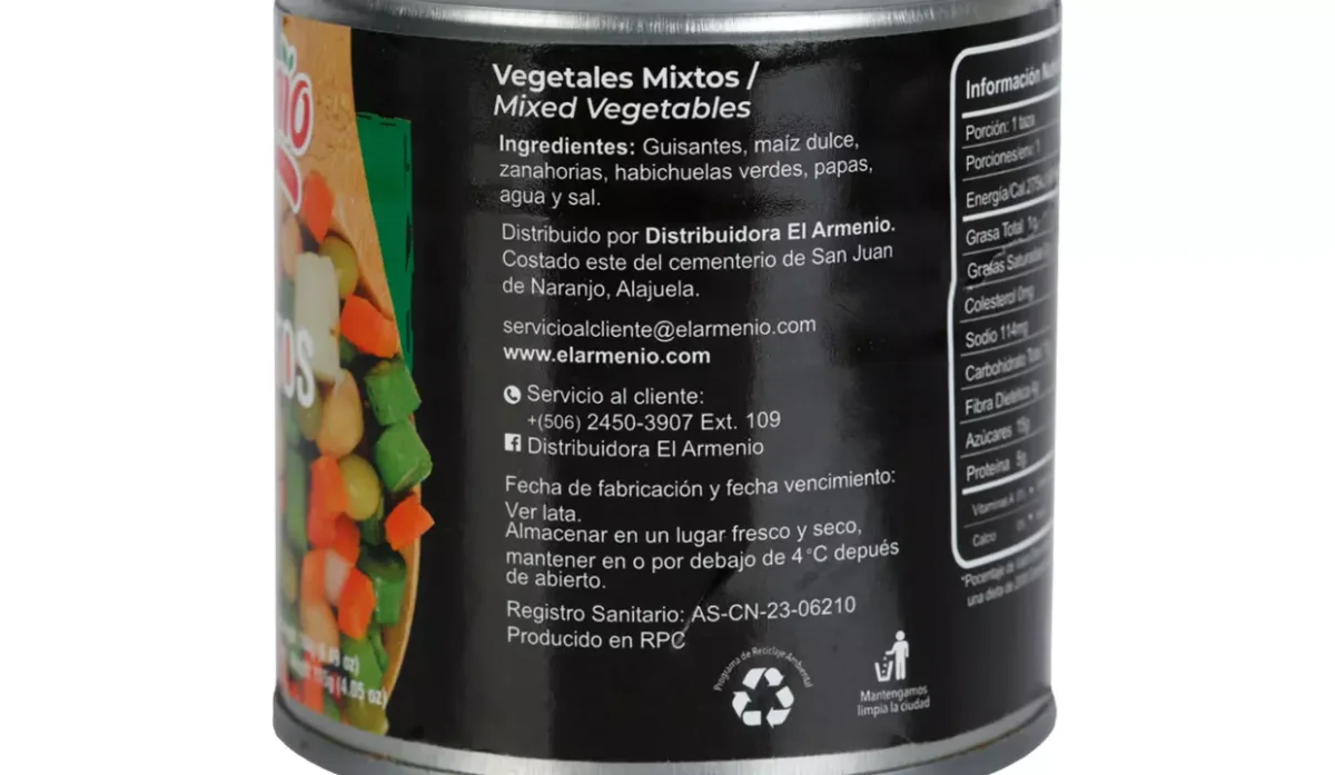| Ingredientes | Guisantes, maíz dulce, zanahorias, habichuelas verdes, papas, agua y sal |
