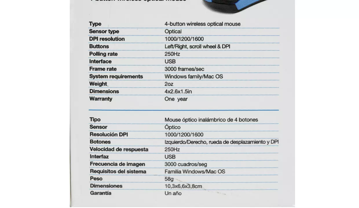 Tamaño | Mouse: 6,6 cm de ancho x 10,3 cm de largo x 3,8 cm de alto |