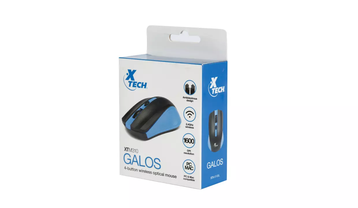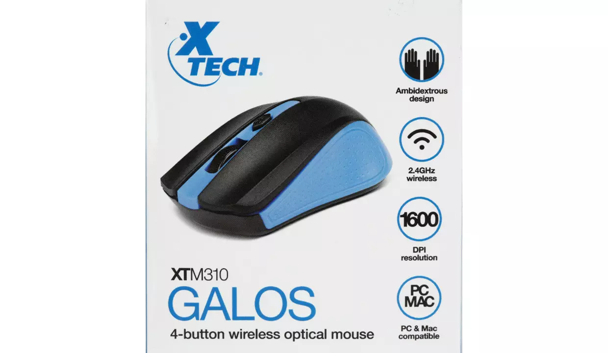 MOUSE ÓPTICO INALÁMBRICO GALOS X TECH NEGRO CON AZUL
