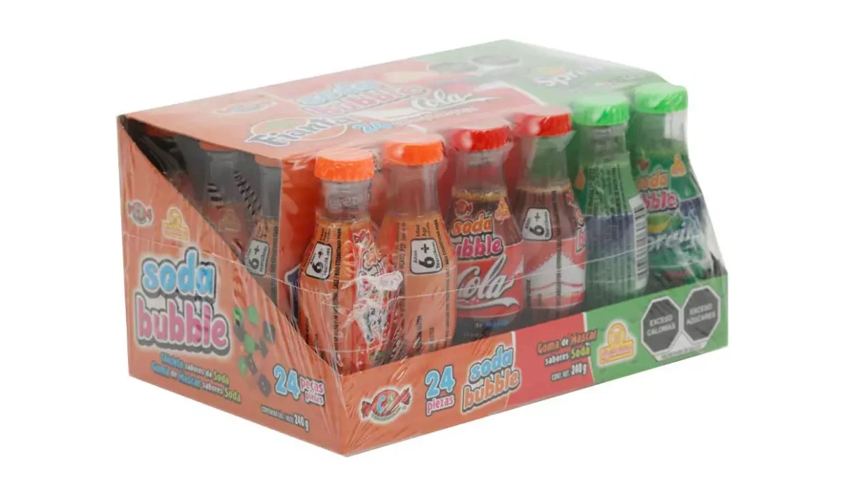 | Características | Chicles con sabores a fianta, cola y spreit |