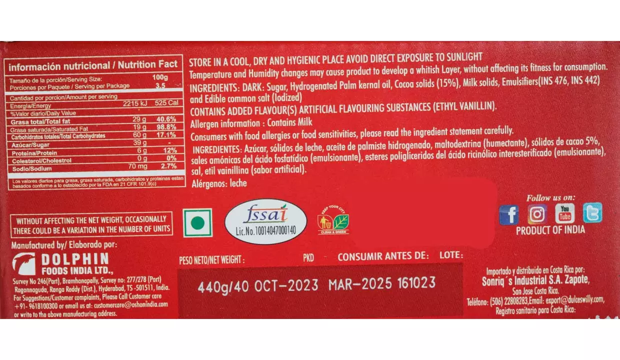 CHOCOLATES OSHON CHOCO WONDER DARK CHOCO BAR 440G