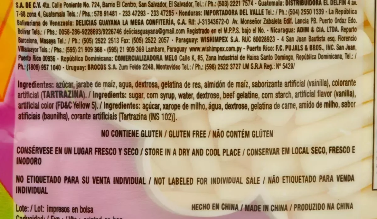 | Características | Malvaviscos sabor a vainilla con figura de papas a la francesa |