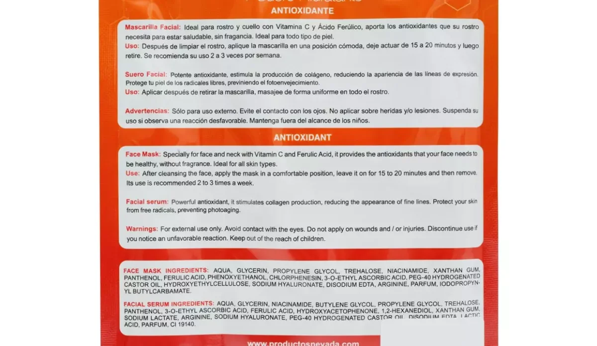 MASCARILLA FACIAL+SERUM 2 EN 1 VITAMINA C NEVADA