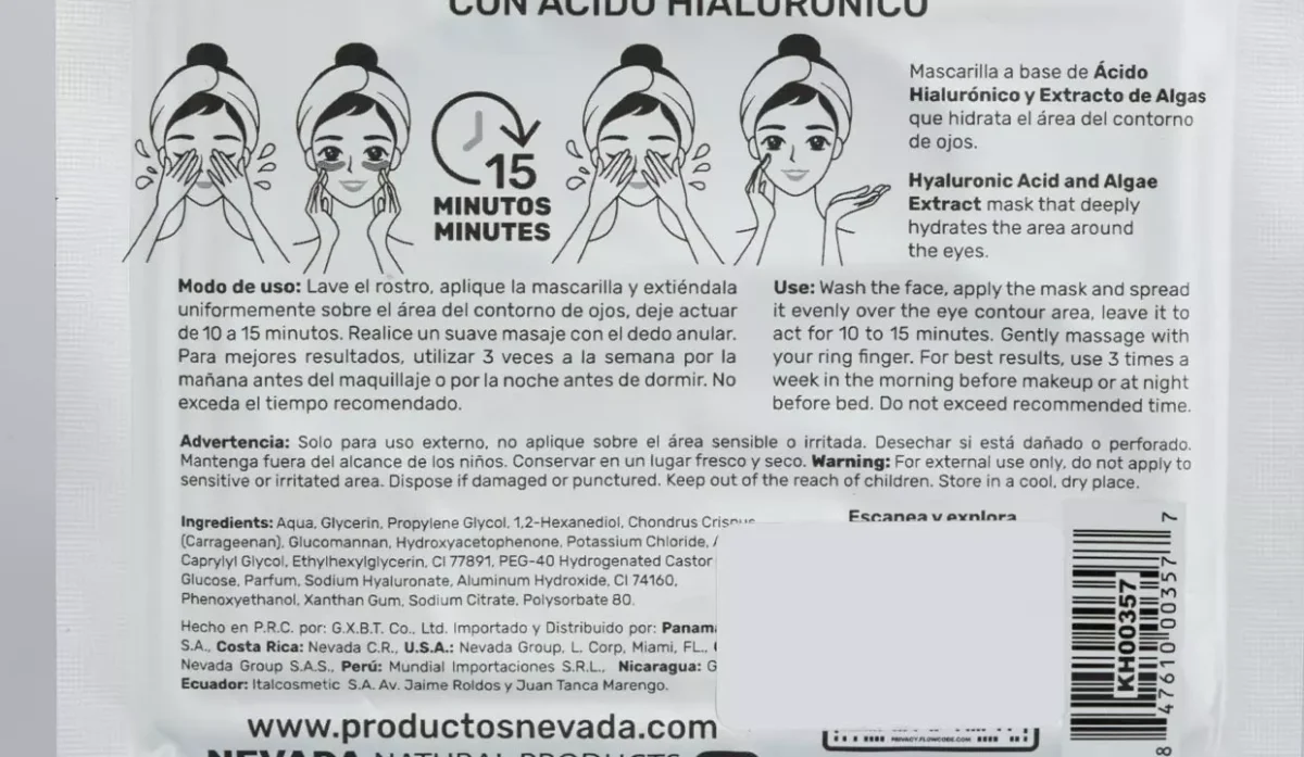 MASCARILLA CONTORNO DE OJOS NEVADA ÁCIDO HIALURÓNICO 6G