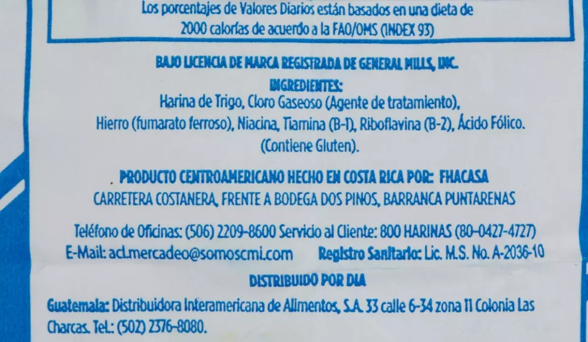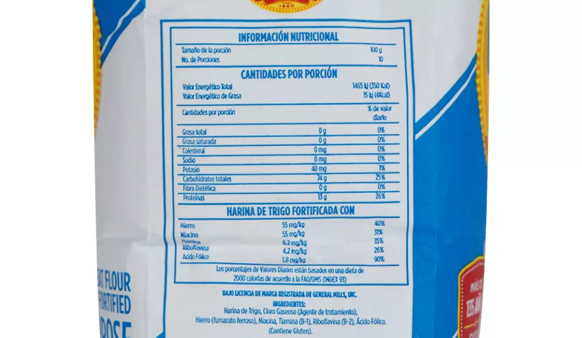 | Características | Harina de trigo fortificada |