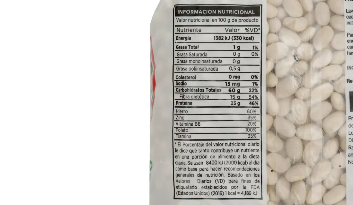| Características | Buena fuente de: hierro, fibra y proteína |