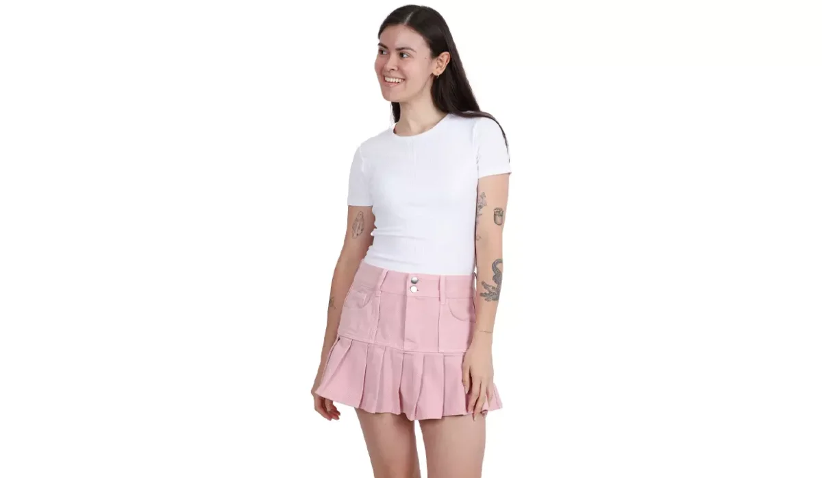 MINIFALDA DE MEZCLILLA AMERICAN BAZI ROSADO T.S