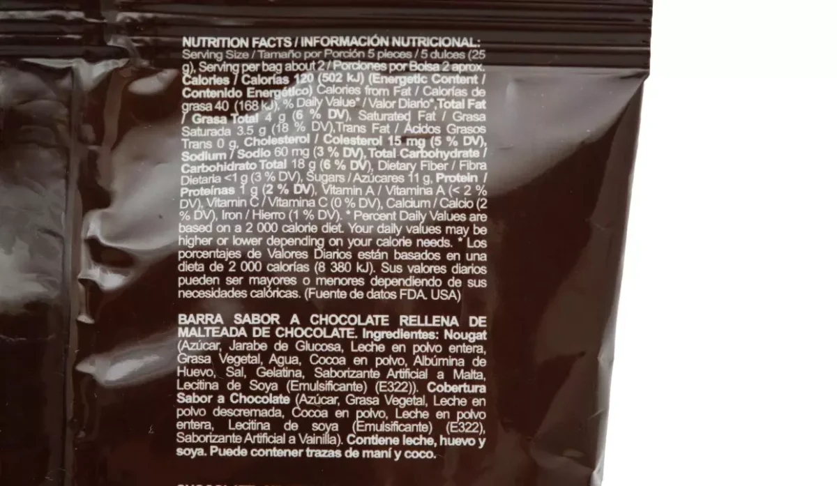| Características | Barras sabor a chocolate rellenas de malteada de chocolate |