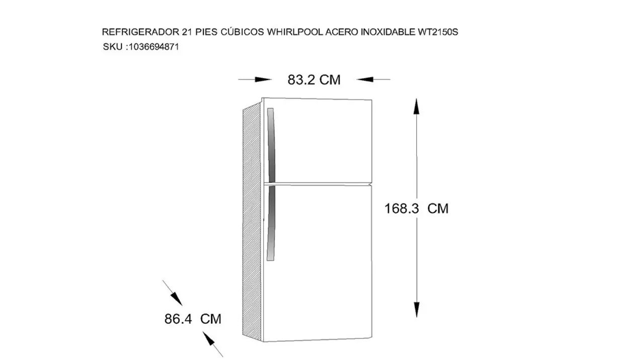 Tamaño | 83,2 cm de ancho x 87,37 cm de profundidad x 168,4 cm de alto |