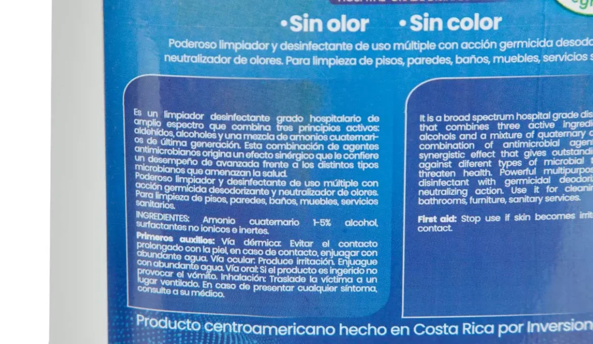 | Ingredientes | Amonio cuaternario 1-5% alcohol, surfactantes no ionicos e inertes |