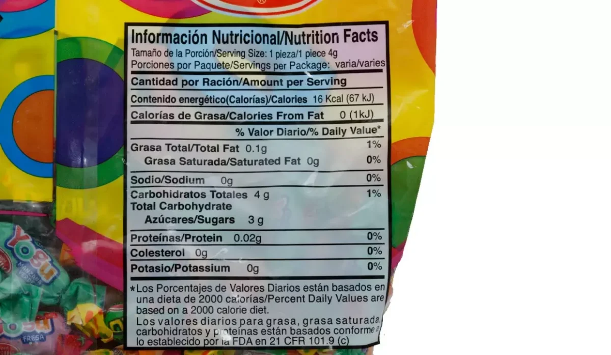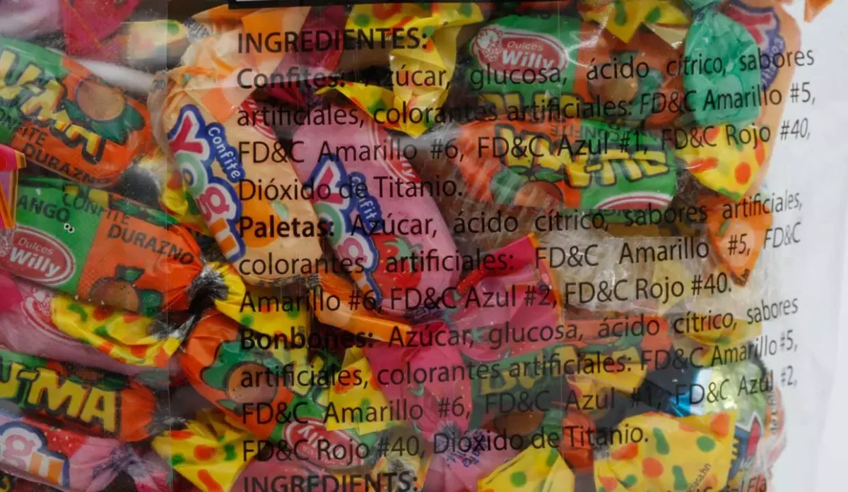 | Ingredientes | Azúcar, glucosa, ácido cítrico, sabores artificiales, colorantes artificiales, amarillo #5 y #6, azul #1, rojo #40, dióxido de titáneo, ácido cítrico |