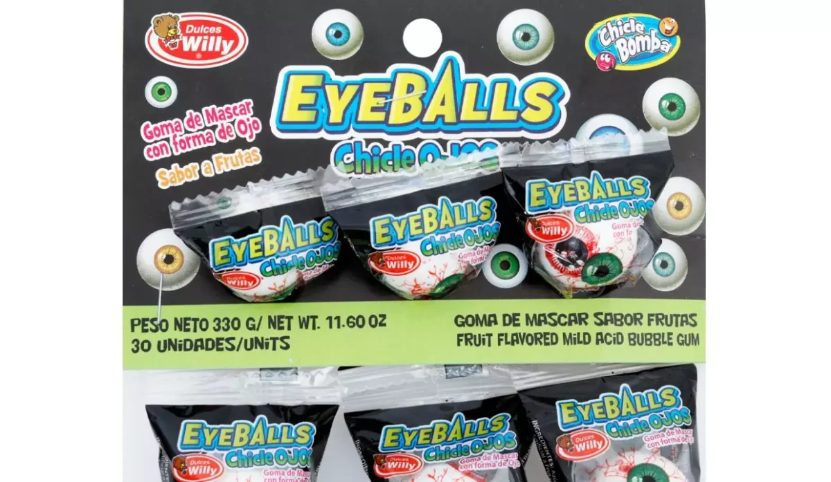 TIRA DE CHICLES CON FORMA DE OJOS DULCES WILLY 30 UNIDADES