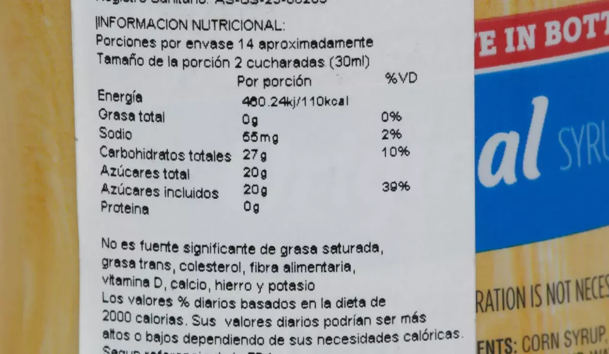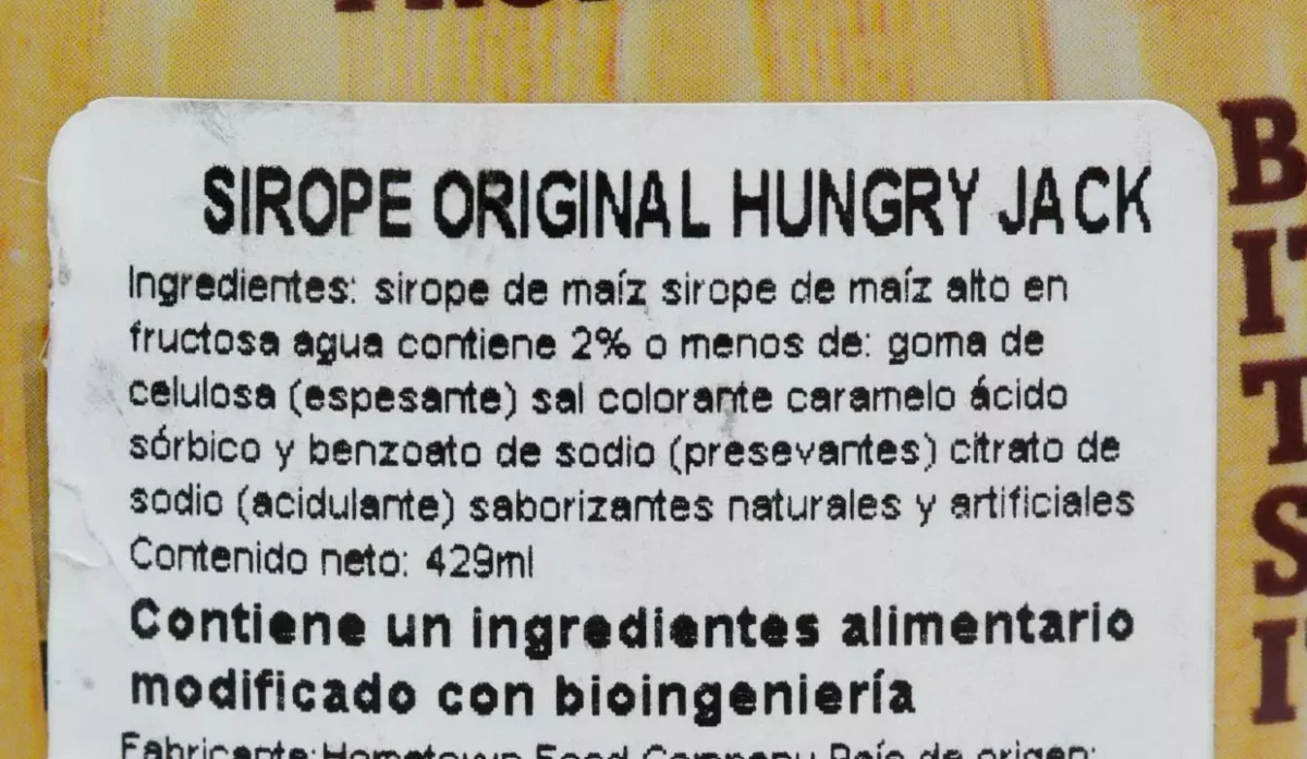 | Ingredientes | Sirope de maíz alto en fructuosa, agua, contiene 2% o menos de goma de celulosa, (espesante) sal, colorante, caramelo, ácido sórbico y benzoato de sodio, (preservantes) ciltrato de sodio (acidulante) saborizantes naturales y artificiales |