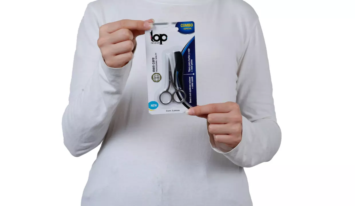 SET DE TIJERA PARA BARBA Y CEJAS + MINI PEINE TOP FASHION