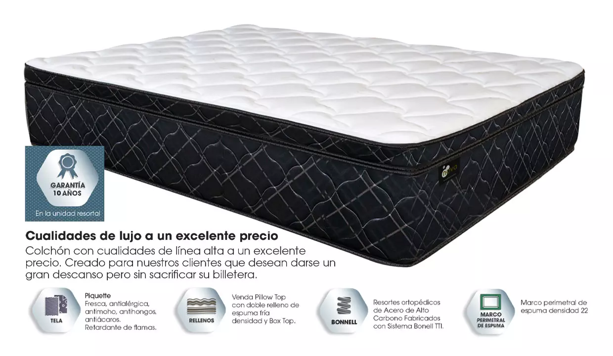 Tamaño | King: 2 metros de ancho x 2 metros de largo x 33,5 cm de alto |