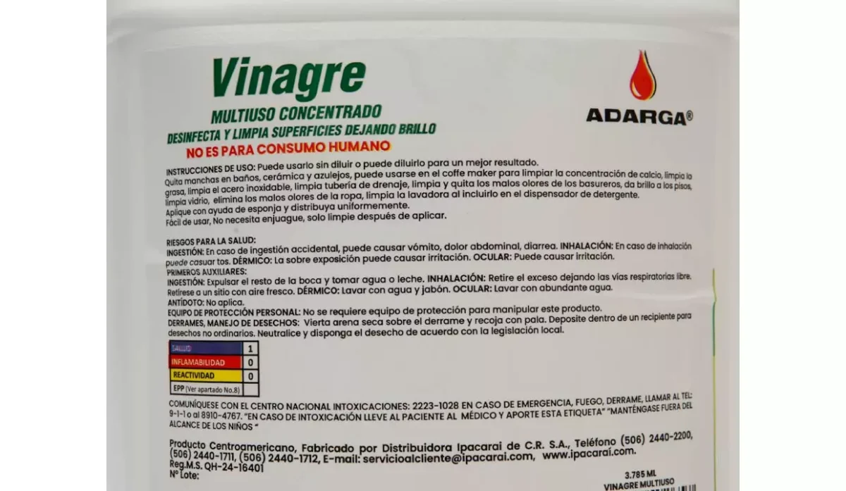 LIMPIADOR MULTIUSO CONCENTRADO DE VINAGRE 8% ADARGA 1 GALÓN