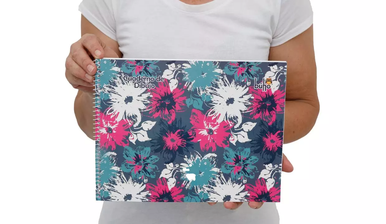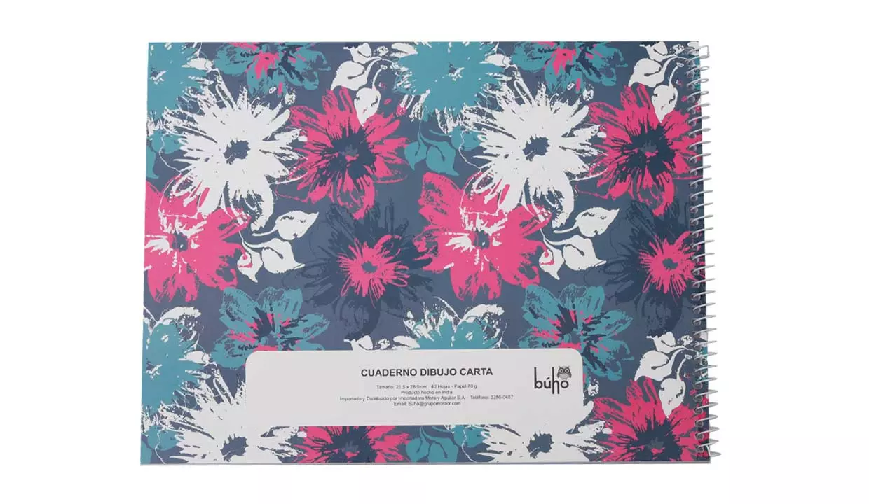 CUADERNO FLORES DE DIBUJO BÚHO RESORTE 40 HOJAS