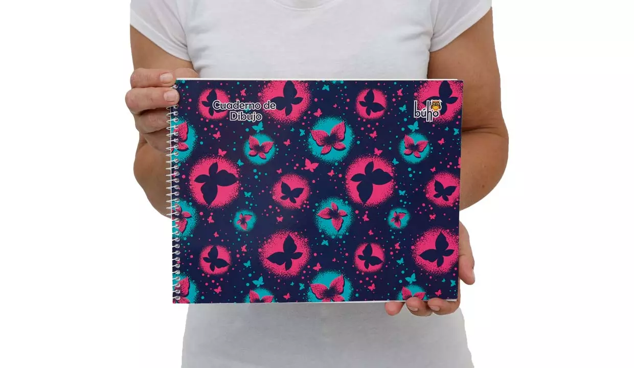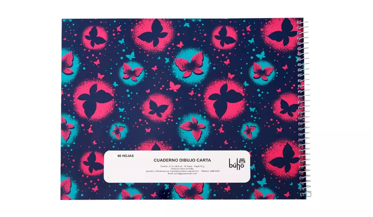 CUADERNO DE DIBUJO BÚHO RESORTE 40 HOJAS MARIPOSAS