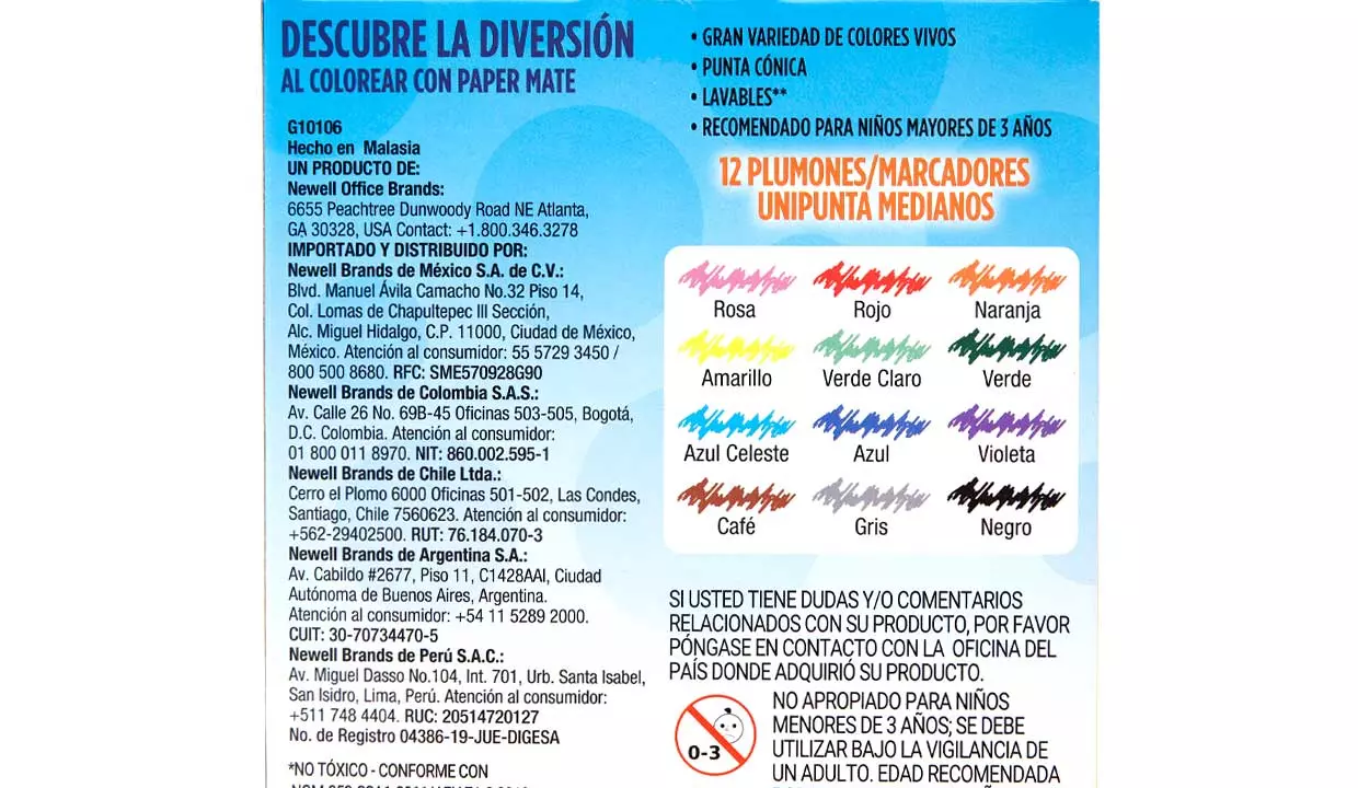 MARCADORES DE COLORES PAPER MATE UNIPUNTA 12 UNIDADES