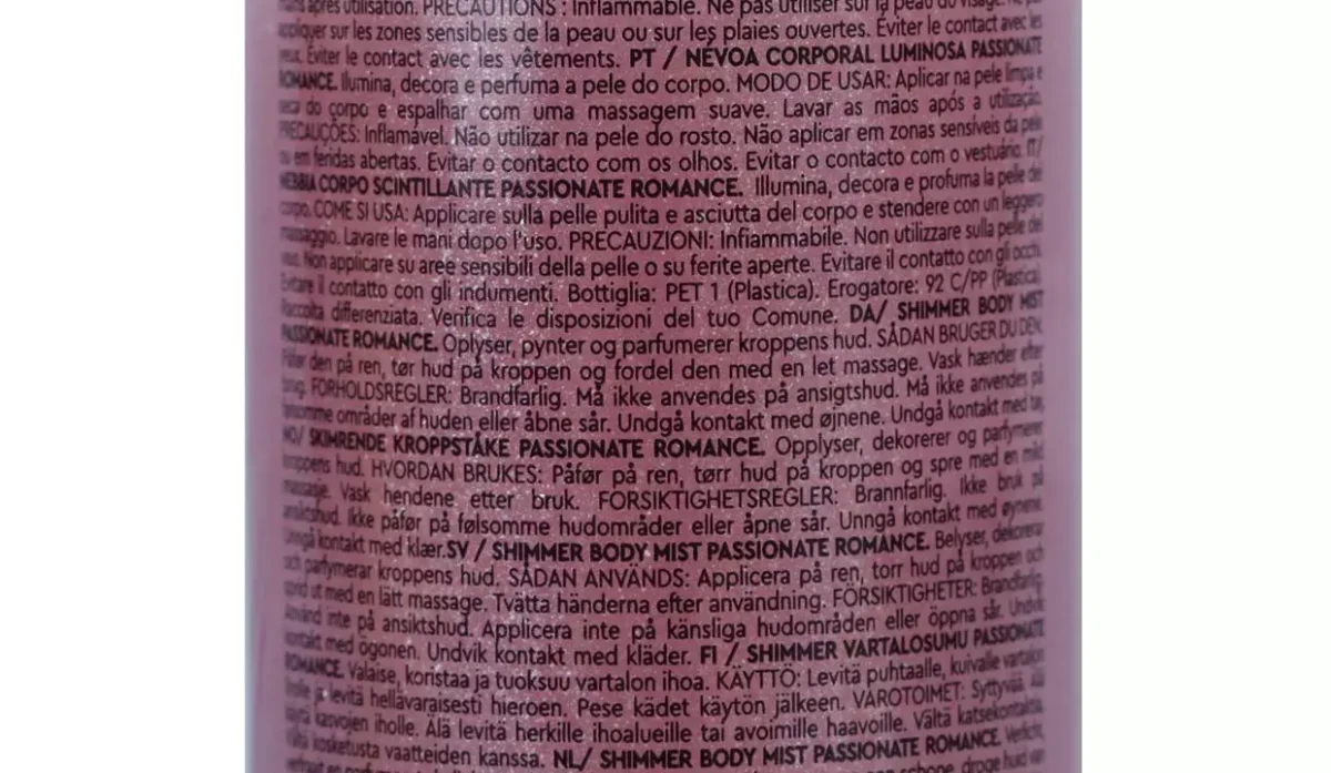 | Ingredientes | Aqua, alcohol desnaturalizado, perfume (fragancia), aceite de ricino hidrogenado, acrilatos c10-30, croospolímero de acrilato de alquilo, etilhexilo, metoxicinamato, sintético, fluoriflogopita, aminometilpropanol, óxido de estaño, salicilato de bencilo, cumarina, hidroxicitronelal, limoneno, linacol, dióxido de titanio, óxido de hierro |