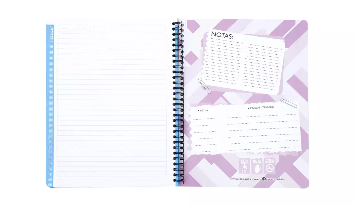 CUADERNO EL LÍDER RESORTE 100 HOJAS TAPA FLEXIBLE