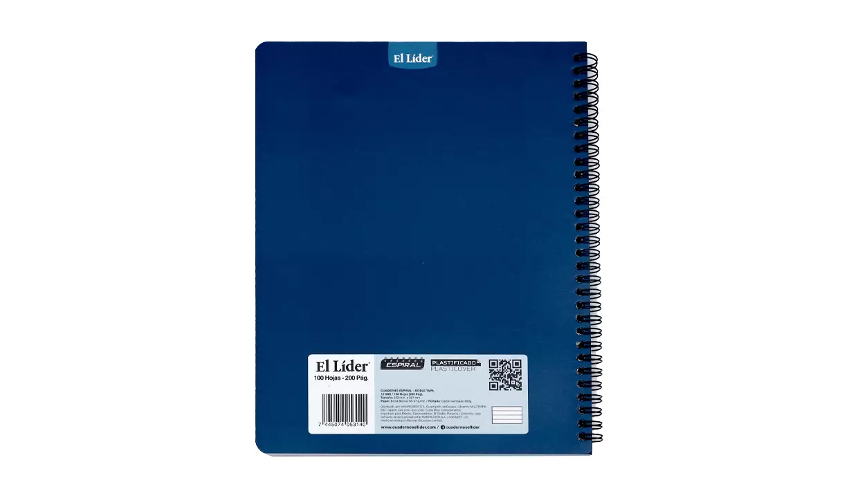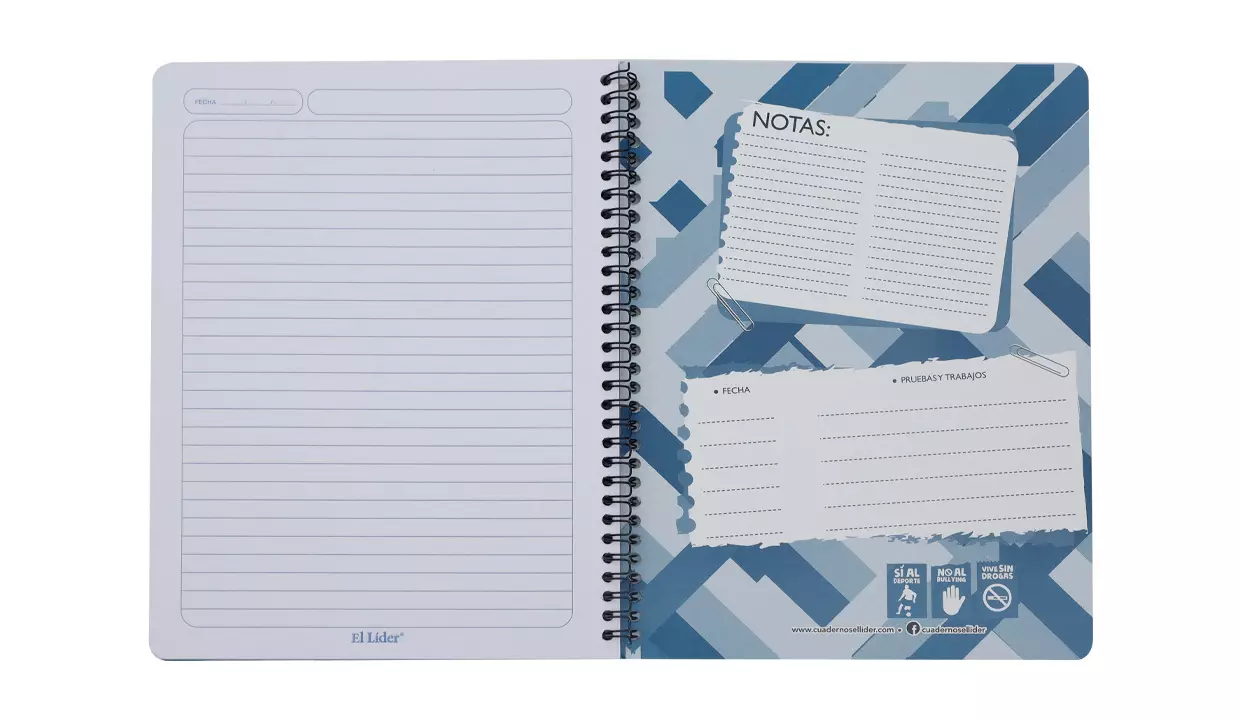 CUADERNO EL LÍDER RESORTE 100 HOJAS TAPA FLEXIBLE